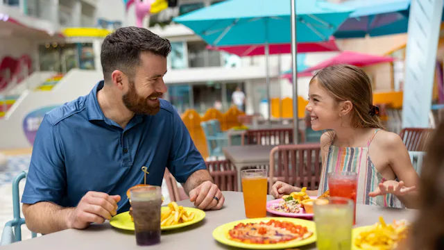 Een dag op zee geeft je ook eindelijk de tijd om wat meer uit te proberen aan tafel. Even snel ontbijten is hier meestal niet nodig. Op Icon of the Seas heb je keuze uit meer dan veertig eetgelegenheden, bars en lounges, plus dertien inbegrepen restaurants. Denk aan een food hall, zoals AquaDome Market, klassiekers voor het hele gezin en specialty dining voor wie van een uitgebreid diner een avond uit wil maken. Voor families zijn er bovendien restaurants en menu’s die het makkelijk maken om samen te eten. Daardoor kan eten op een zeedag zomaar uitgroeien tot een van de leukste onderdelen van de dag.